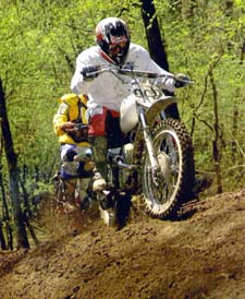 Friday was Jim Pomeroy’s MX school day. The Ghost started right up and was ready for action. The school started late and went down hill from there. You couldn't blame Jim for it though; it's hard to conduct a class with trials riders all over the track that was supposed to be reserved for us. I must say Jim was a class act. When he saw there was no way he could teach, he called the class off and refunded half our money even though we said he didn't have to. There was one young rider in class on a small KTM that thought it was funny to throw mud on you while waiting in line. After about the fourth time I asked him to stop but he did it again and laughed about it! Jim motioned us down, and he was given a lesson in mud manners. The Zed did throw a good roost on him, so no more mud problems that day!