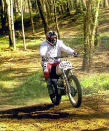Second Moto at the gate the Team Weedy guys are really being fantastic by giving me pointers on getting a good start. Lawrence told me ‘No more wheelies!’ and of course I told him I was bird watching. I'm still feeling very tired from the first Moto, but I did get a good start this time around. I almost bought the Big One when I got caught in two different ruts at the same time. Good old CZ power fixed that. The seat still has clinch marks. By the third lap I'm really exhausted, but I press on. Finally the white flag! I thought everyone had passed me so I relaxed and enjoyed the rest of the ride but then I killed my engine in the same place Giles did. Just as I got her started back up, an Elsinore passed me. I almost caught back up to him but it was too late. I guess I made every rookie mistake a person could make, yet I’ve never had so much fun messing up! I ended up 6th overall out of 7 riders, G man was 4th.