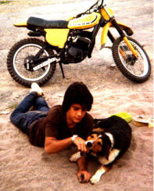 Just as I was beginning to get the hang of things, a strange twist of fate stepped in; the race was at Claverack. I can't remember how I did in the first race, but I qualified and made it to the second moto. On the first lap of that race, I was running fairly close to the front of the pack when I fell coming off of a drop-off down hill jump. I was a bit dazed but was all right. My bike lay perpendicular to the track. As I picked it up, another rider came off that same drop off and squarely with his front wheel, hit the side of my bike. I was looking right at him as he came over his handlebars. His helmet hit me square in the face. I had on a Pacific "Face Fender" at the time, but it really did nothing for me. I woke up in an ambulance on my way to the hospital. I had lost six of my top front teeth in one shot. Both lips had to be stitched up inside and out. I couldn't see a dentist until the swelling had gone down which took about a week. Even after seeing a dentist, there wasn't much they could do for me for almost a month. The pain and swelling was excruciating. That was it for my racing, as my parents would have no part of it. They did let me keep the bike, and I rode it around the property where we lived. In 1978 we moved back to New Jersey and I sold the bike when I began going to school in NY City. In 1995 I went to a dealership with my friend Jerry Cantone.