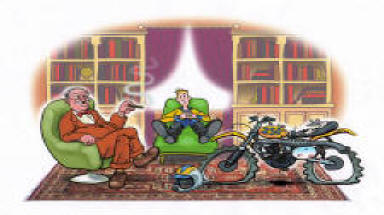 One final question for you Joe. Looking into a crystal ball, it’s the year 2015. What is the state of vintage motocross and where do you see Joe Abbate and Cycle Therapy going? 2015? Oh my God! New bikes are run on electricity; the Eco-Nazis have all but closed every piece of open land to motorcyclist. Some riders still run bikes on gasoline, but have to do that inside abandoned warehouses. Bikes no longer ride on springs or shocks as they have been replaced with opposite pole magnets where the bikes ride on an “electrical wave”. There isn’t anyone that remanufactures plastic anymore as the factories have devised a way to for the plastic parts to “self-repair”. This is accomplished by microscopic “paintballs” impregnated in the fenders and side panels, when one bends, the paintballs break open instantly repairing the damage. An LCD is inside the rider’s goggles and tells him exactly when to turn the rheostat (there are no throttles or cables anymore it’s all electric, remember?) Cycle Therapy is no longer a restoration business; it has been franchised across America with actual psychiatrists. Its niche market being 50 to 80 year old men who sit in group therapy, talking about the good old days, just around the turn of the century (2000) watching ‘On Any Sunday’ and burning scented candles that smell like pre-mix. Not to worry though, “motocross” is as big as ever! There is an arena in every town across America! Most arenas are old supermarkets that are no longer in use due to people shopping for groceries online. Gone is the “drudgery” of Sunday racing, loading up, fresh air, seeing if your hard work all week long holds up to the torturous track conditions. Children and their parents enjoy “moto-ing” two nights a week much like soccer. There are only two motos a night; no need for anymore than that. There is racing in every town now. No need to haul the bike around either, the bike just stays at the “track” recharging until the next race. Last but not least, we don’t want to make youthful racers feel inferior in any way. We no longer “place” riders at a level of any kind, nor does it matter where they finish because there are no trophies, you now earn points when you race which buys you “recharge time” for the bike. Jeff Smith is 84, and still considers Brad Lackey 66, to be a “hippy”.